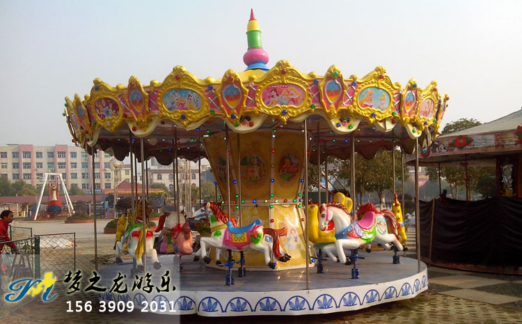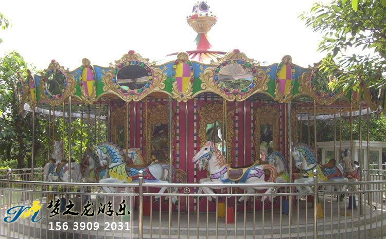 豪華旋轉(zhuǎn)木馬是夢之龍開發(fā)研制的新款游樂設(shè)施。該設(shè)備既能繞垂直主軸旋轉(zhuǎn),又能上下起伏的游樂機(jī)械。屬于下傳動、設(shè)計新穎、機(jī)構(gòu)獨(dú)特、造型美觀。下面是夢之龍豪華旋轉(zhuǎn)木馬使